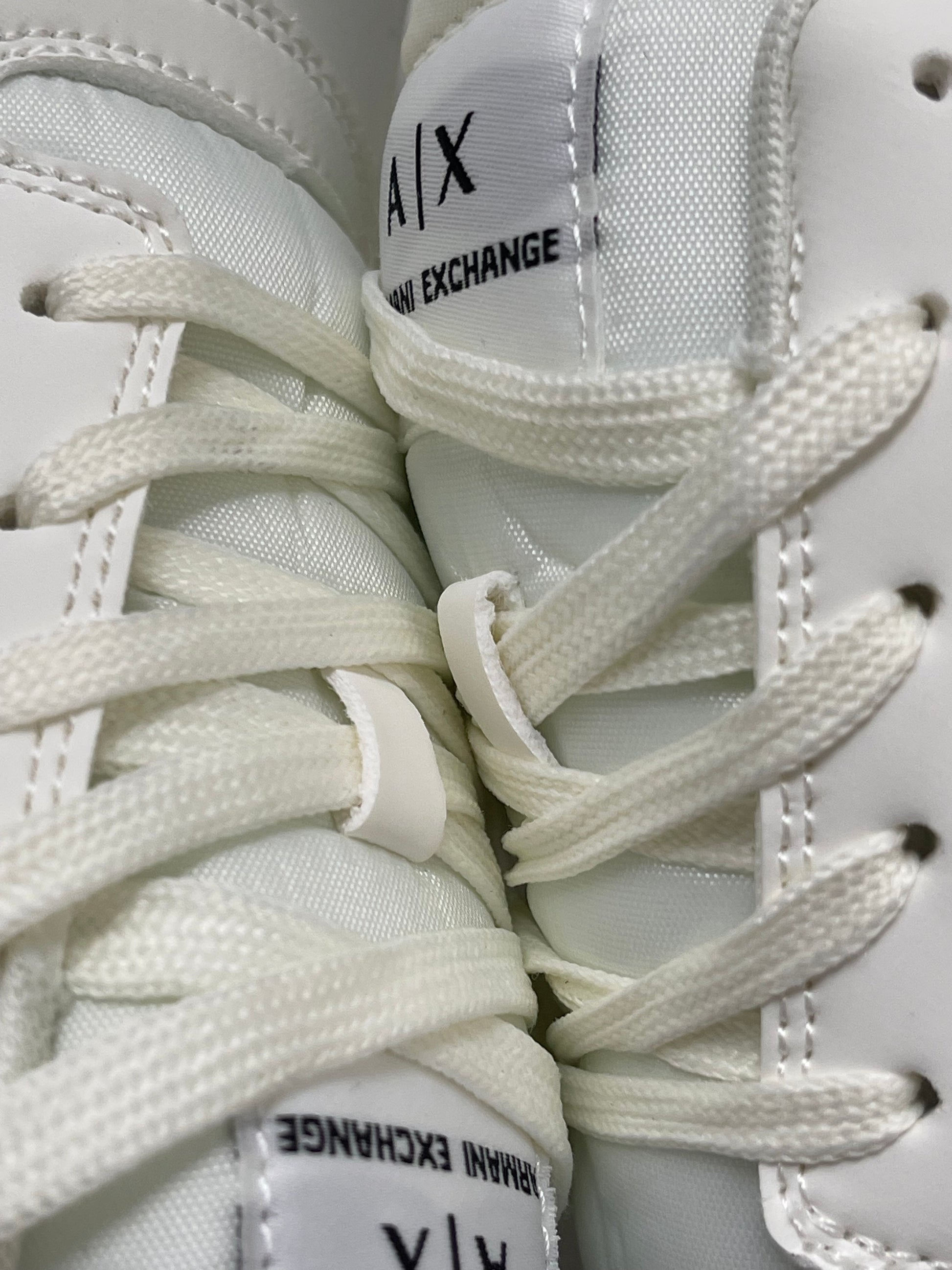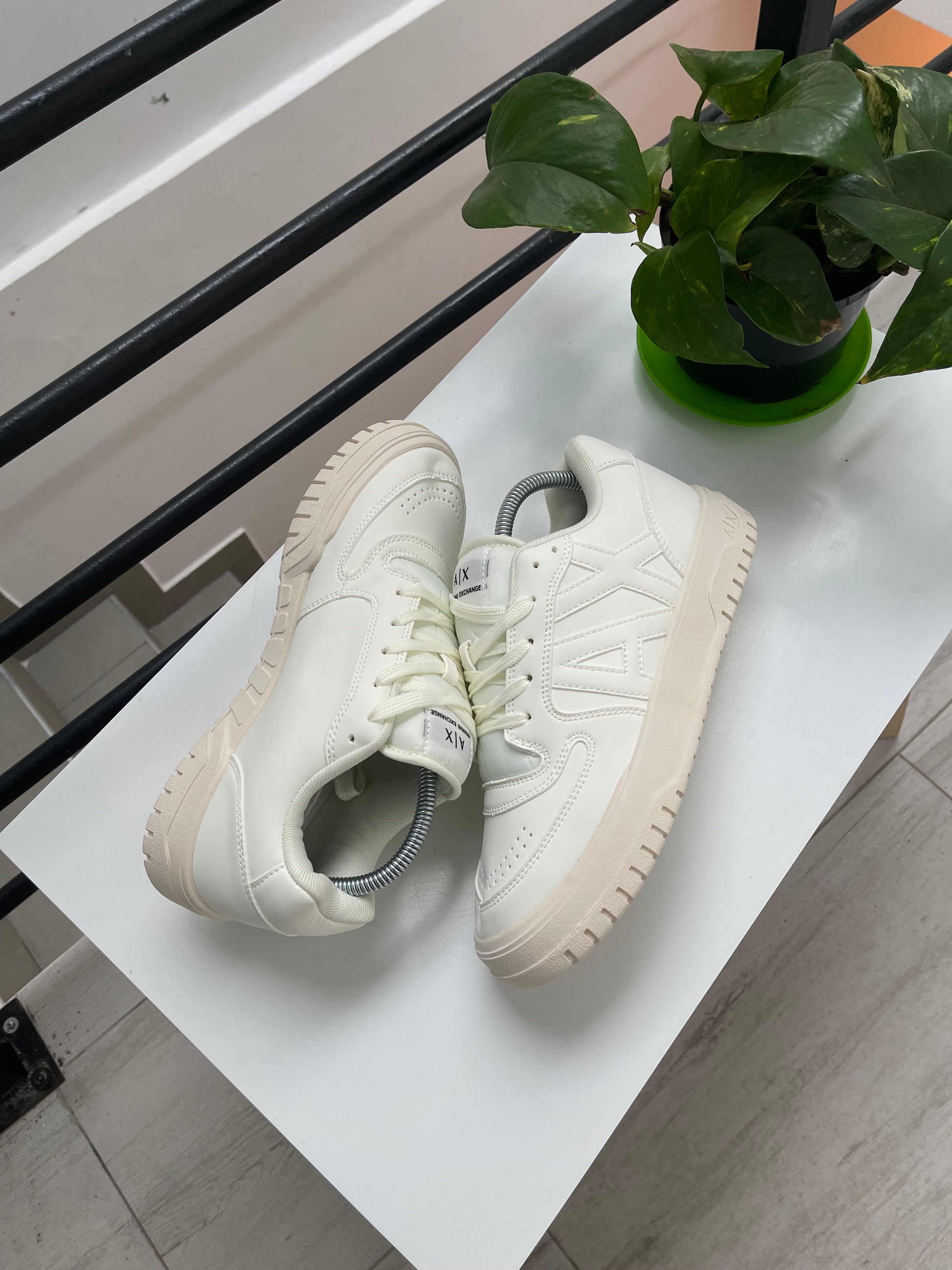 “Minimalismo urbano en tono arena. Estas sneakers de Armani Exchange combinan ante y materiales suaves con suela de goma, ofrecen un look limpio y sofisticado para la ciudad.”