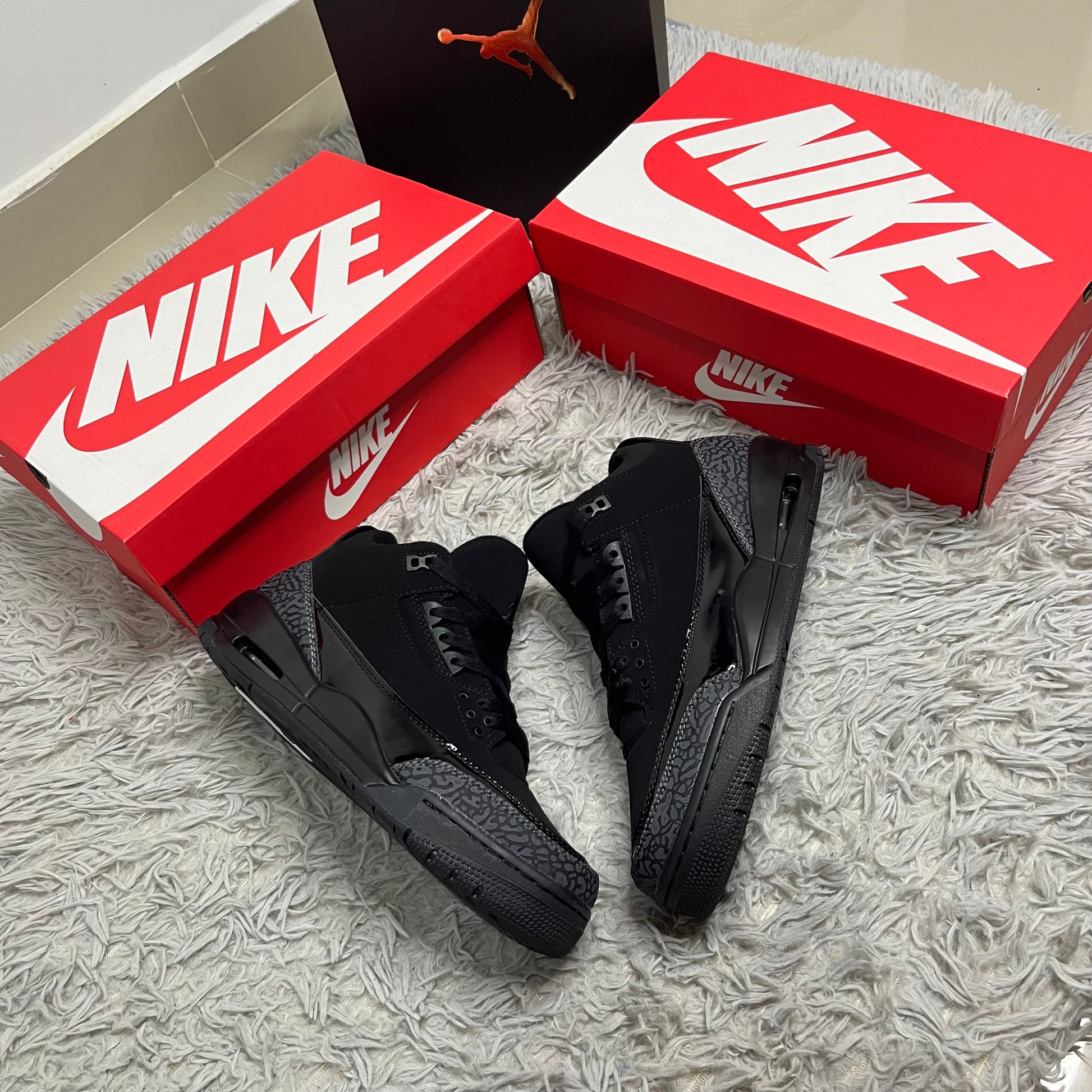 Versión sobria y elegante del Jordan 3. Parte superior negra con detalles grises y suela blanca. Perfectos para quienes buscan un par icónico con una estética limpia y atemporal.