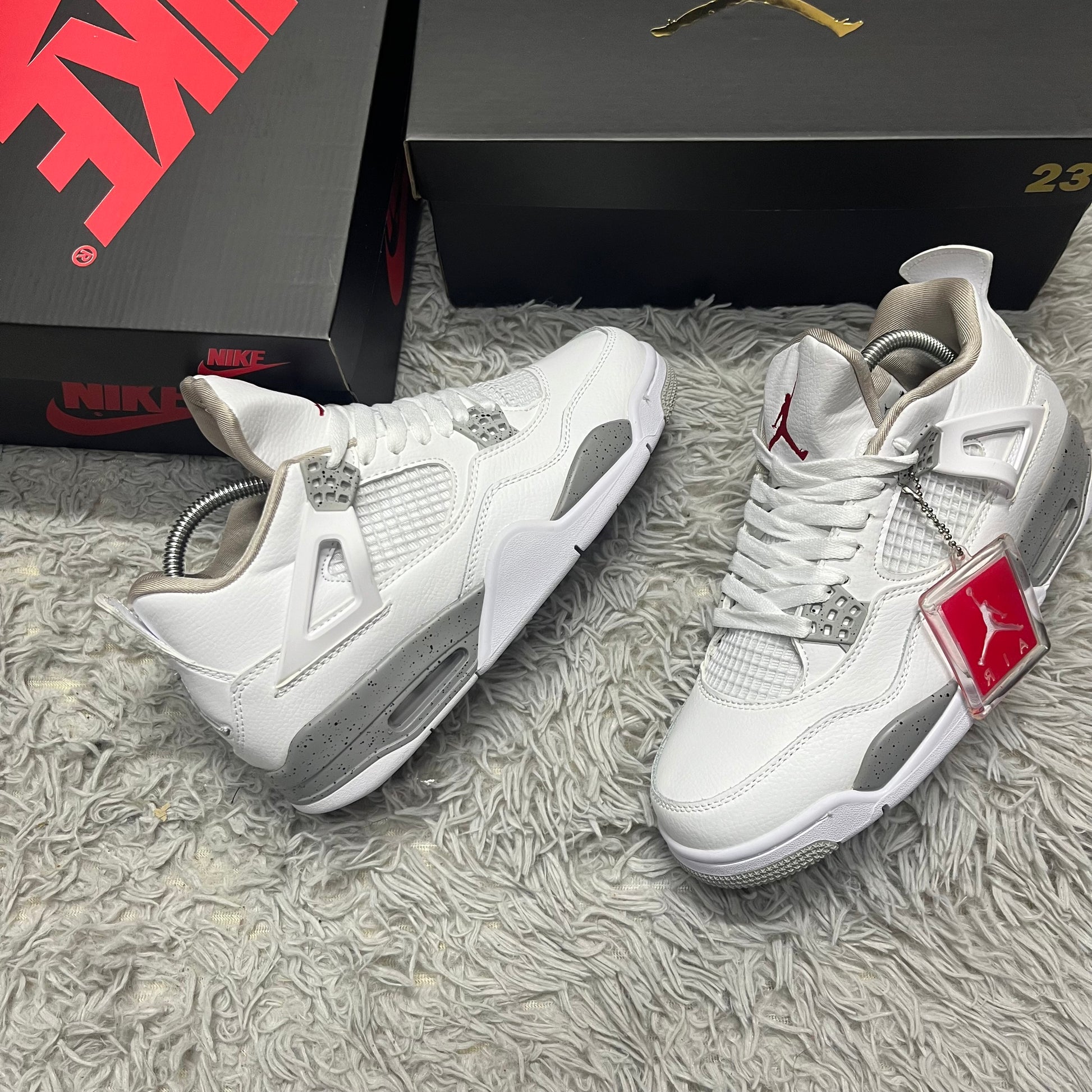 "Jordan R4 Oreo: un clásico con un toque único. Con su combinación de colores en blanco y negro, estas zapatillas ofrecen un diseño elegante y audaz que destaca en cualquier ocasión. Con la calidad y el rendimiento que solo Jordan puede ofrecer, son perfectas para quienes buscan estilo y comodidad en cada paso."