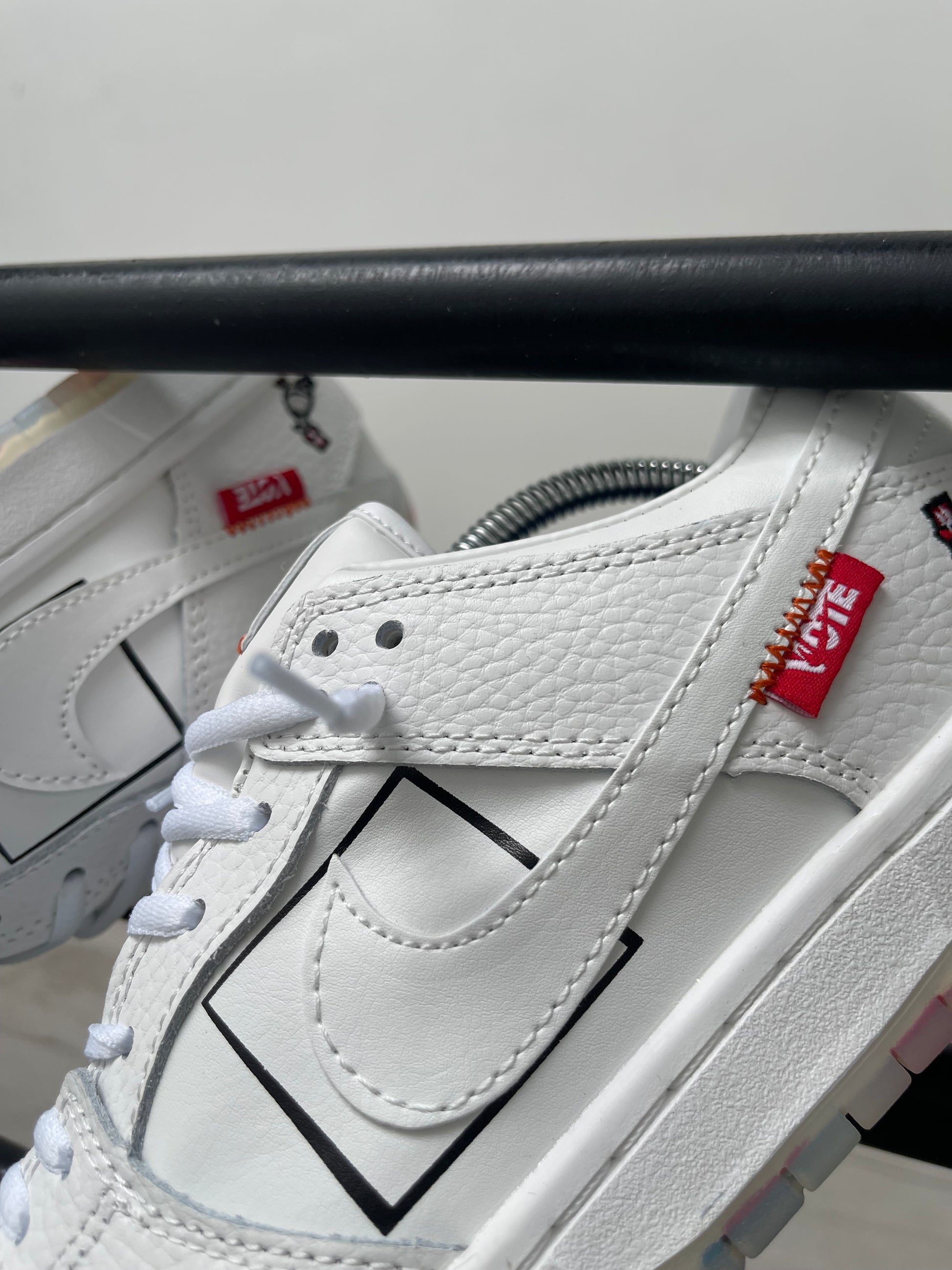 Inspirado en el clásico “Pigeon Dunk”, pero con una vibra mucho más artística, este diseño mezcla tonos grisáceos, azules y acentos naranja que simulan brochazos de pintura sobre un lienzo.