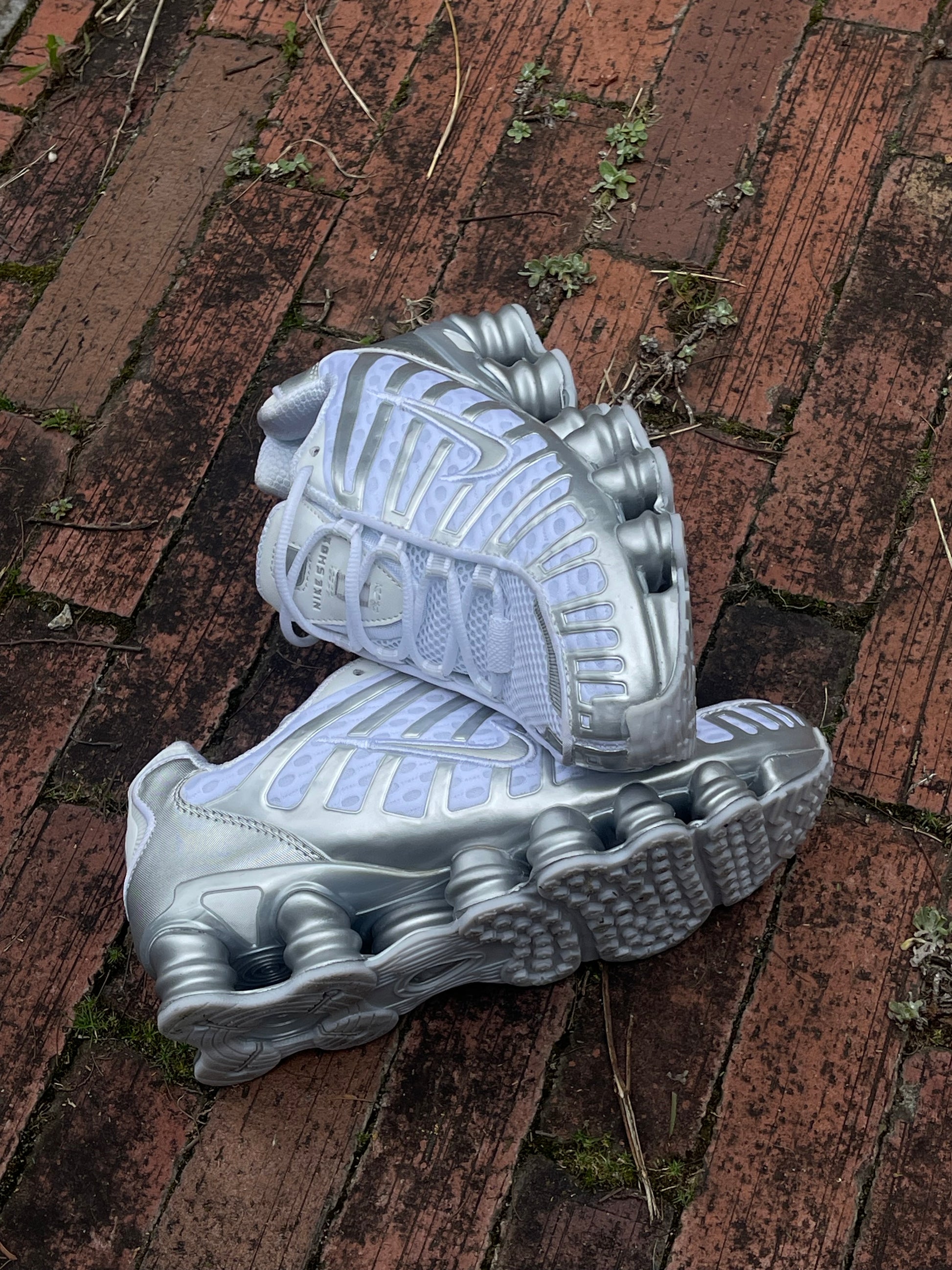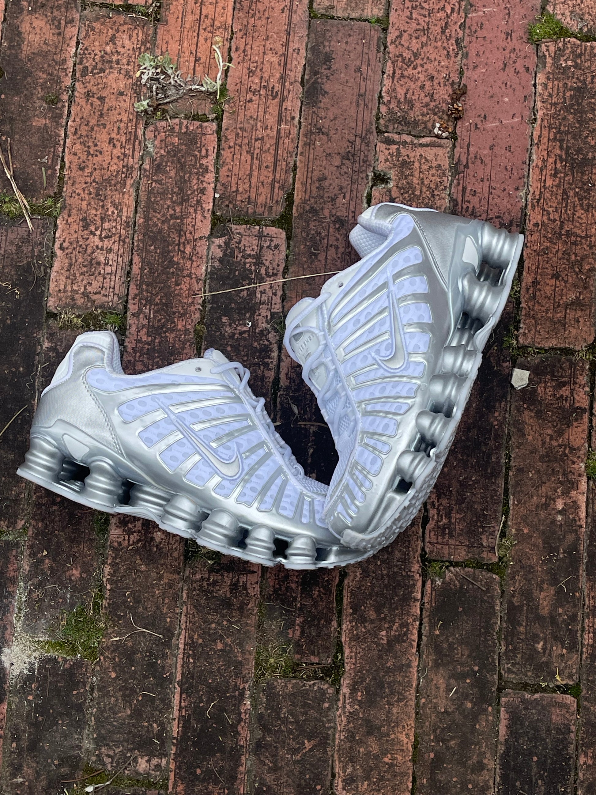 Las Nike Shox TL White llevan el diseño técnico de los 2000 al siguiente nivel con una estética completamente blanca, limpia y potente. Este par destaca por su estructura de columnas Shox que no solo brinda amortiguación de alto nivel, sino también un estilo único y agresivo.