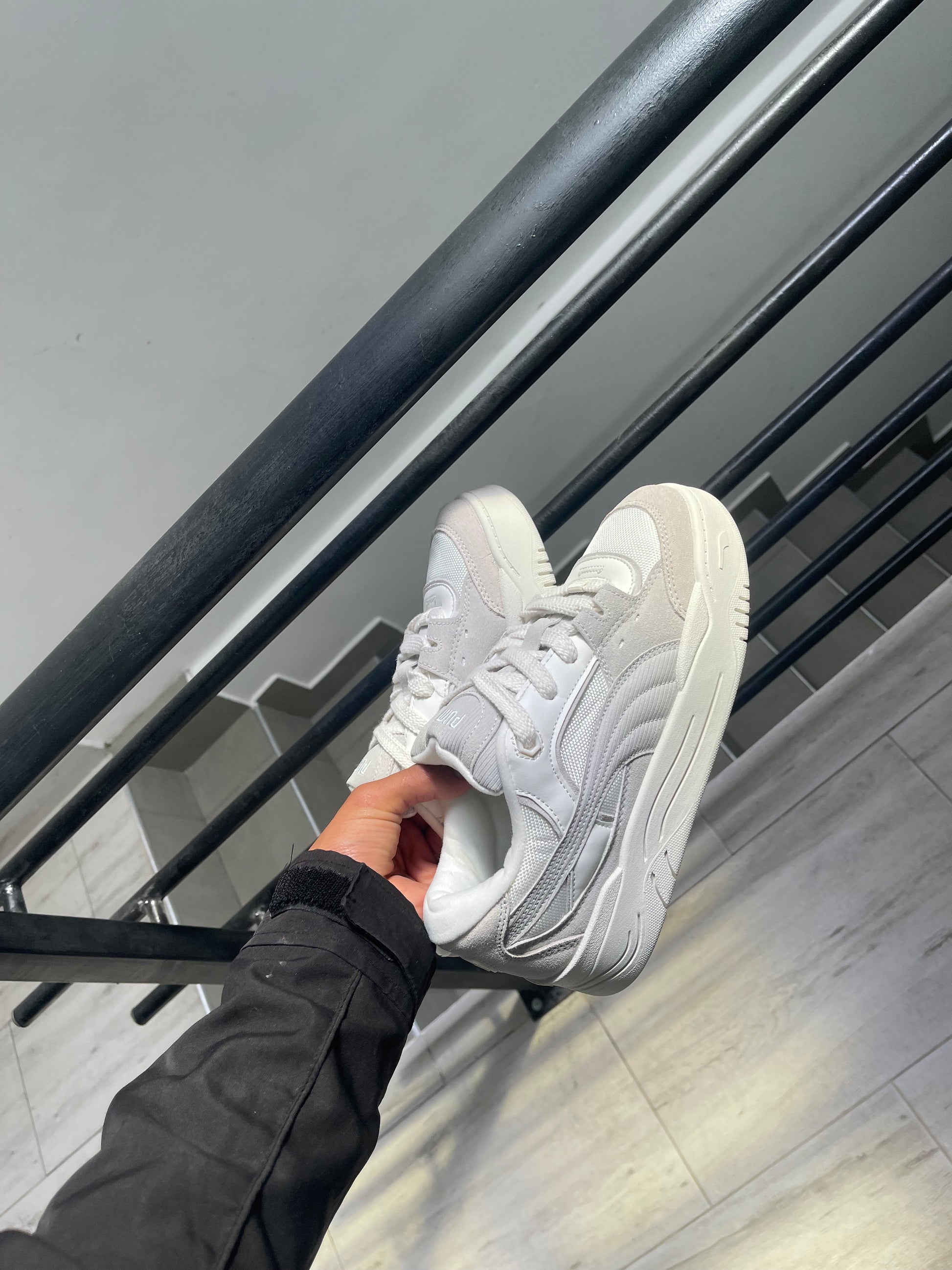 Con paneles en gamuza, malla y cuero sintético, este modelo ofrece un look fresco y cómodo que se adapta a cualquier outfit urbano, desde joggers hasta jeans o faldas.